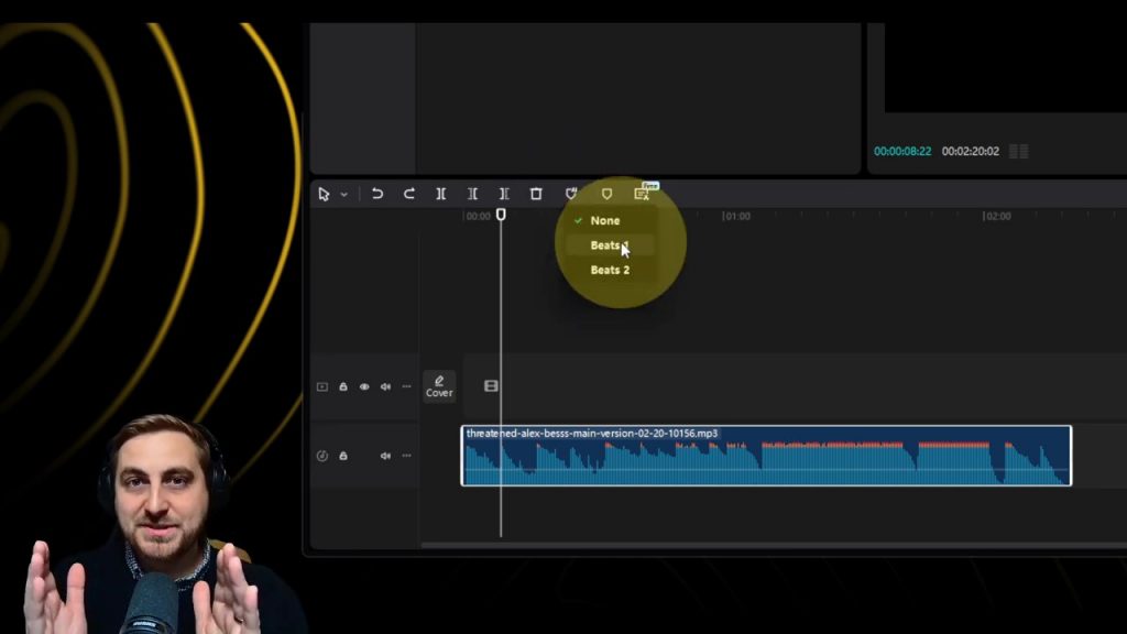 • Markers will appear on the timeline at key moments, helping you align visuals with the music.